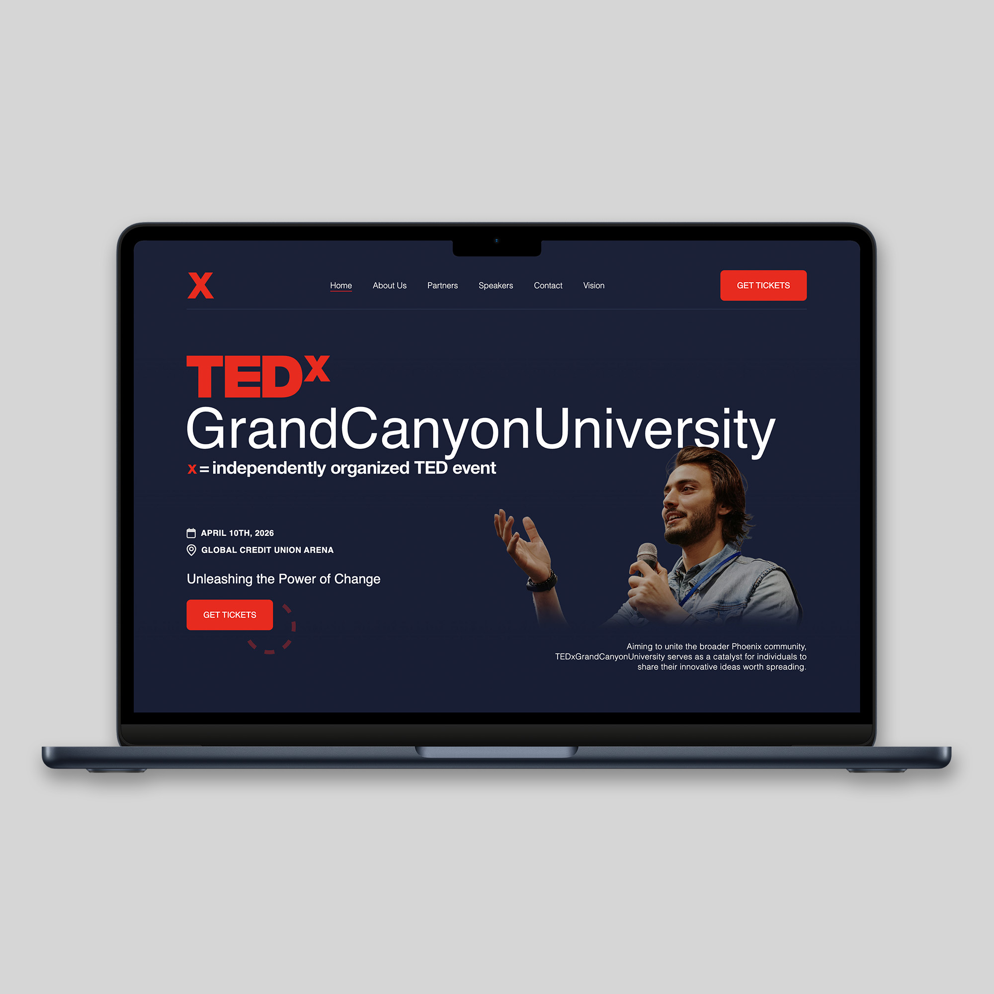 With many hours dedicated to communication with the TEDx team, we ensured that all design elements were corresponding to the vision that their team had. Not only did we meet their vision, we elevated it into something stronger. What we came up with was TEDxGCU Legacy.